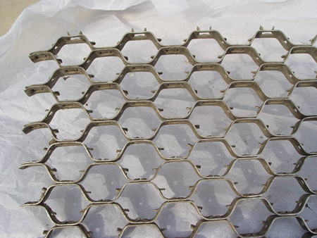 特点:六边均有孔相互联通,易弯曲弧度,点焊在壳体内壁后,浇上耐火骨料,可增加使用寿命数倍,而且耐火材料不会剥落,使用寿命长。